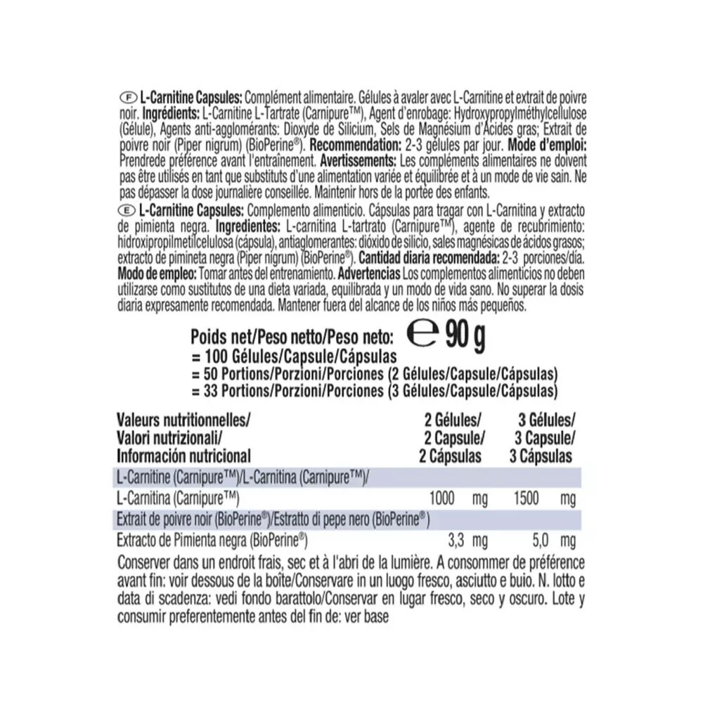 L carnitina BODY SHAPER 100 cápsulas